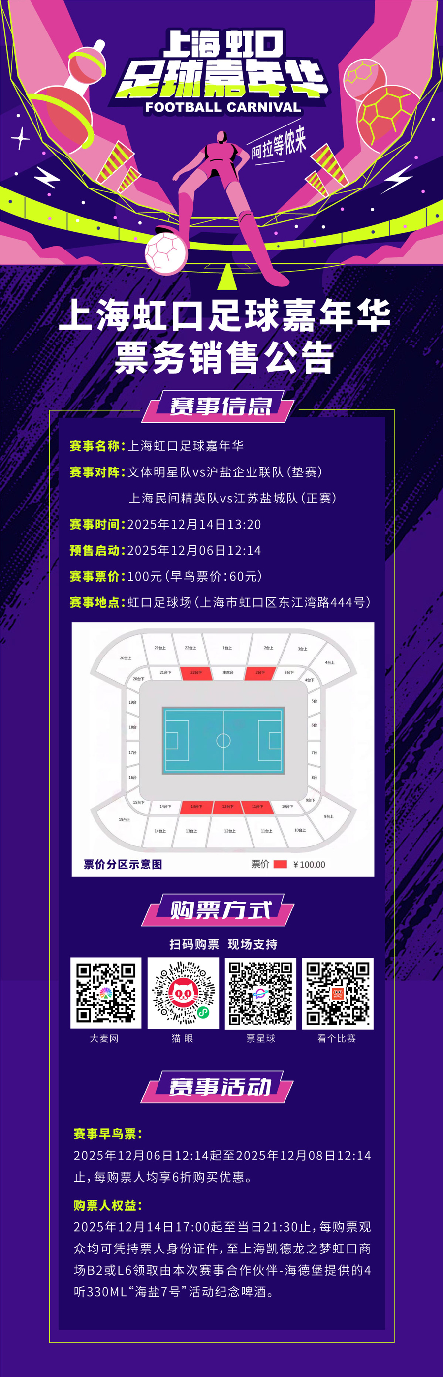 12月14日,上海虹口足球嘉年华将再次点亮虹口足球场——这是一座城市记忆的集结。只为找回那份最纯粹的骄傲、那份与看台同呼吸共命运的精神。这是家的保卫战,属于所有曾为上海足球站过、喊过、哭过的人。