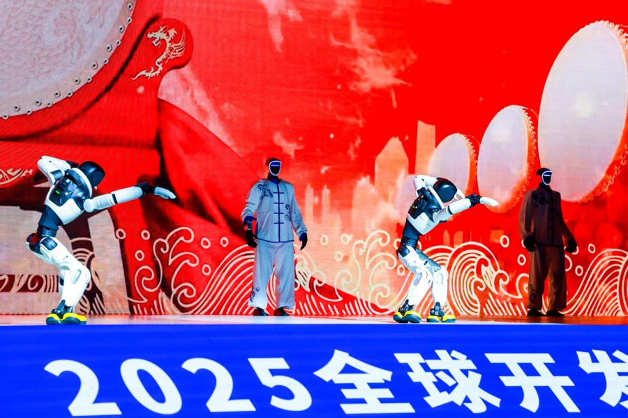 1990年出生的宇树科技首席执行官王兴兴,今年频繁以创业者身份回到上海。从上海大学硕士生到产业领军者,他见证了母校机器人研究院的启用,也活跃于世界人工智能大会、全球开发者先锋大会等舞台。这场周末的竞技赛,无意中促成了智元与宇树——这两家代表中国具身智能最高海拔的企业,首次同台表演。远征A2穿着戏曲服装挥动鼓槌,宇树G1身着白色太极服,白鹤亮翅。