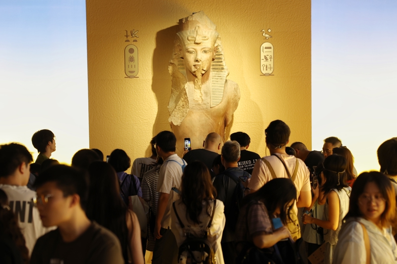 上博埃及大展最后一天,展厅内参观的观众接踵而至壹号娱乐官网,人流如潮。解放日报记者 赖鑫琳 摄影报道
