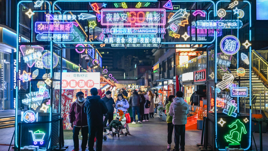 1月7日在上海市静安区吴江路拍摄的夜间市集现场。新华社记者 陈浩明 摄